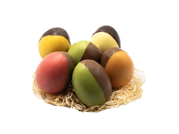 Zak met 6 chocolade paaseieren. Leuk om te verstoppen!