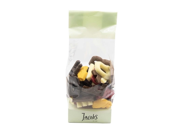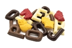 Een leuk zakje met mini lettertjes van pure, melk en witte chocolade. Verpakt per 200gram.